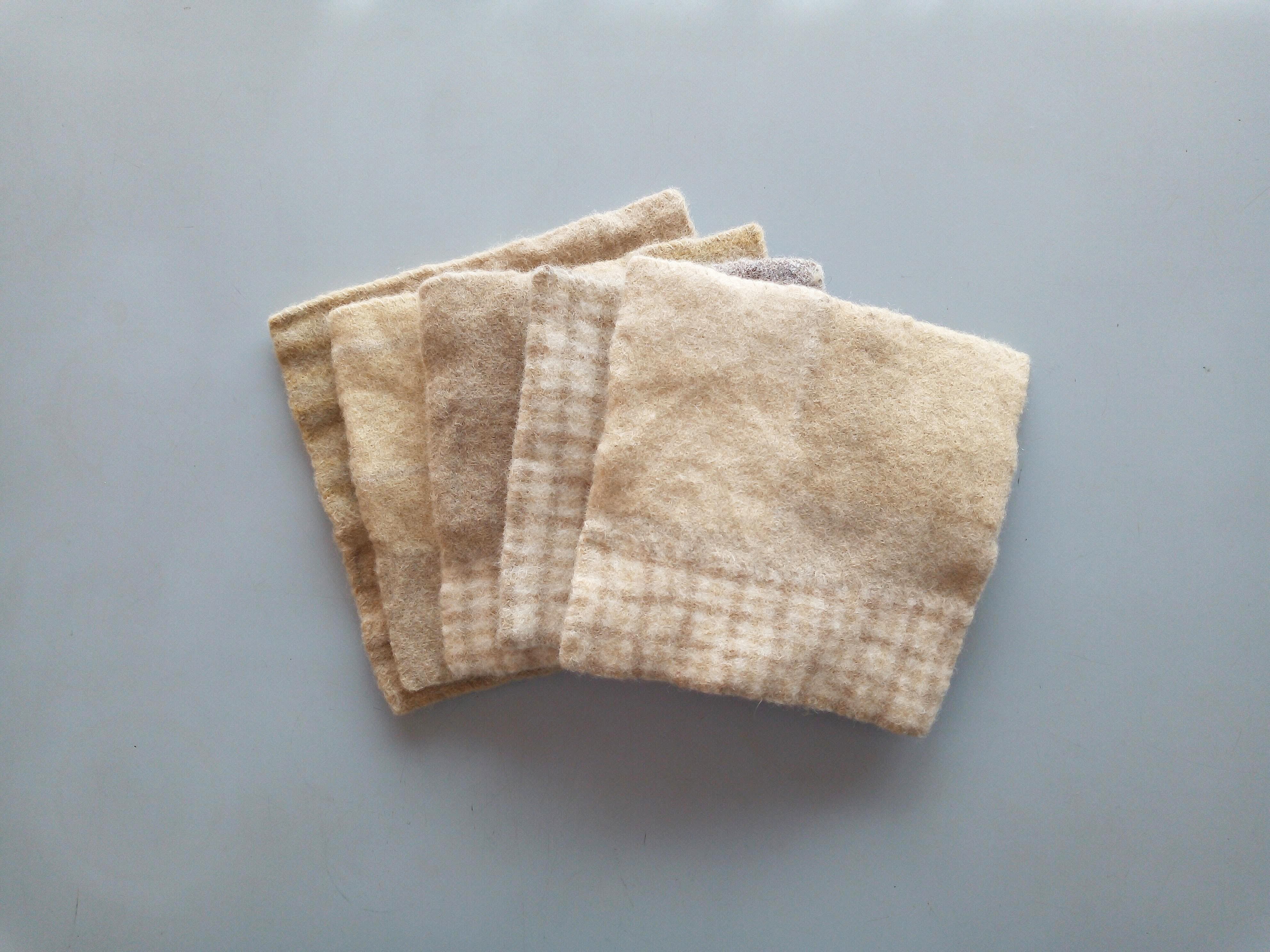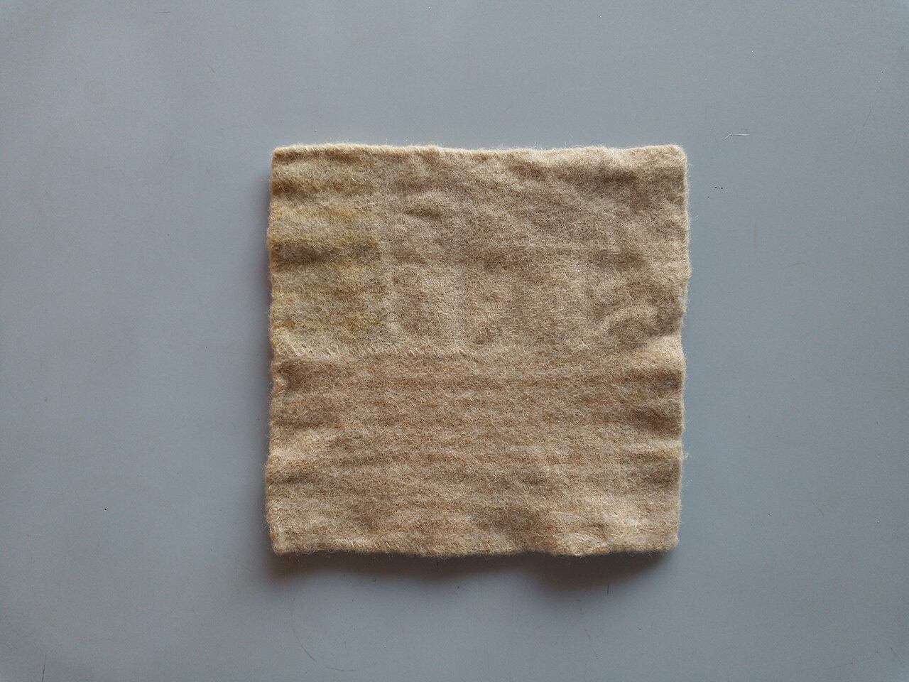 フェルトにすることで、織った糸同士が絡まり、一枚の丈夫な布になります。布が縮むことで厚みも増すので、コースターとして最適な布になっています。