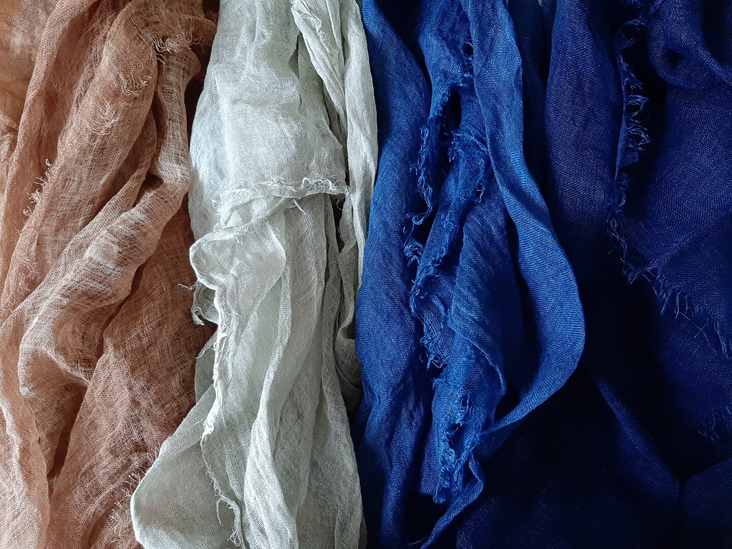 柿渋液と重曹のみを使い、リネンガーゼ生地を染めています。
