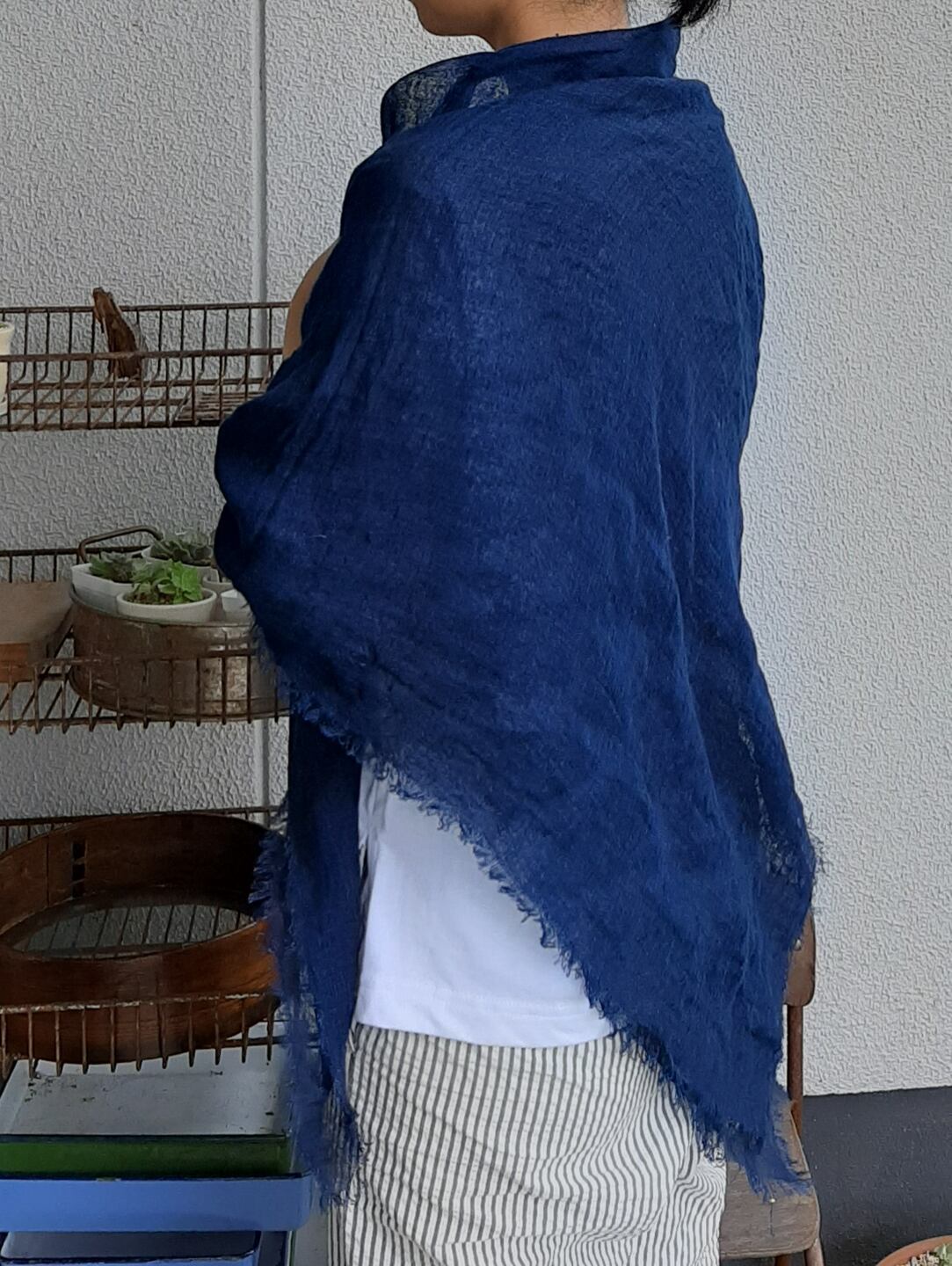 ほかの植物染めのショールにくらべ、色味が複雑で個性的な1枚です。