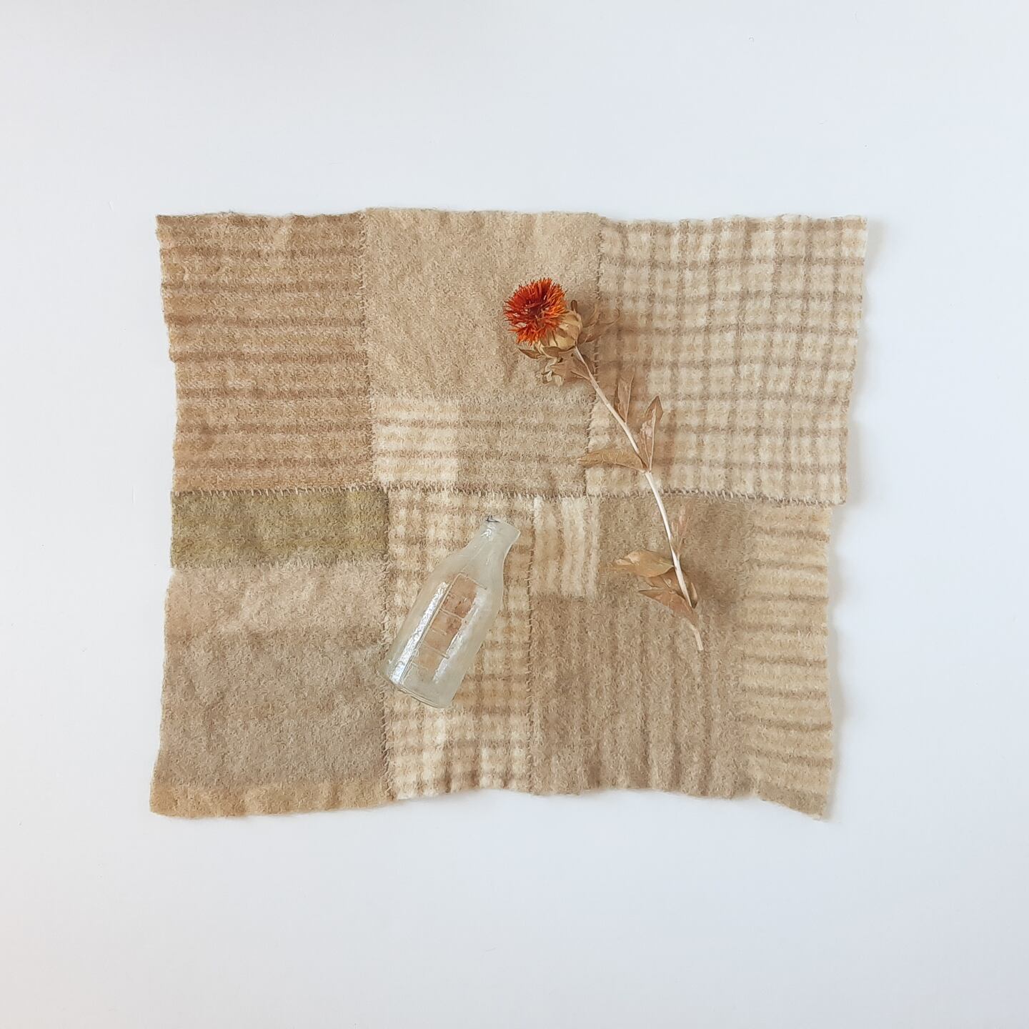 真四角ではなく、はぎれをつないだままのラフな仕上がりです。